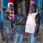 Photo: Festival del Caribe in Santiago de Cuba 2016 with Kunwinjku artists Virgil Narlorlman and Roland Burrunali, accompanying an Injalak Arts exhibition. Photographer Django Elliott (youngest kidlet)